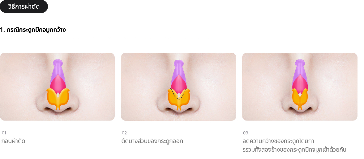 จมูกชมพู่นั้นหมายถึงกรณีเนื้อบริเวณปลายจมูกและไขมันใต้ชั้นผิวหนังมีความหนาหรือกระดูกอ่อน มีความหนามากเป็นพิเศษและห่างออกจากกันจึงทำให้ปลายจมูกดูมีความใหญ่ แต่ละสาเหตุนั้นการผ่าตัดก็แตกต่างกันไป จึงต้องมีการวินิจฉัยที่แม่นยำเพื่อปรับให้จมูกมีความเรียวเล็กและดูทันสมัยมากขึ้น