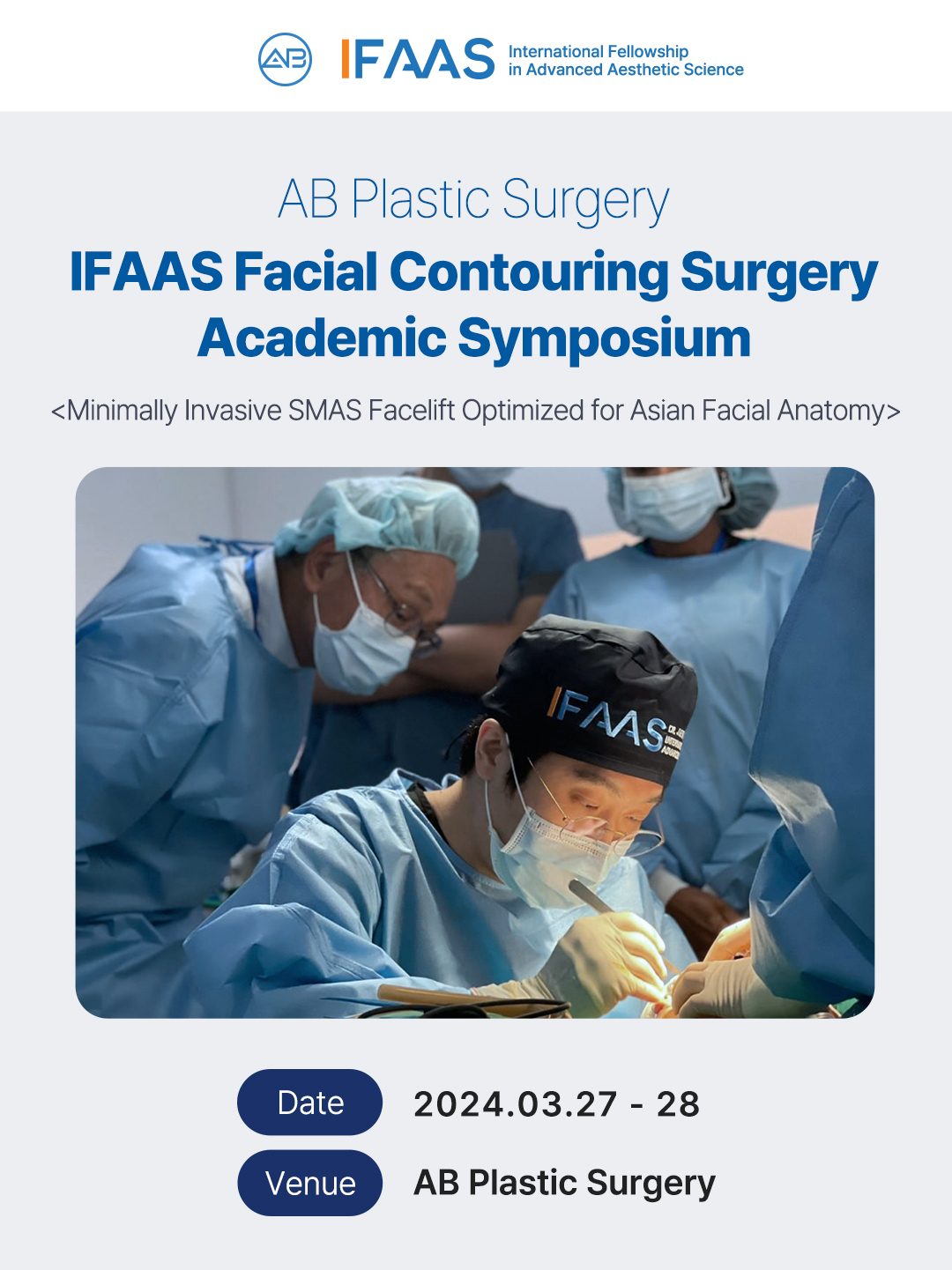 โรงพยาบาลศัลยกรรม AB เป็นเจ้าภาพจัดงานประชุม IFAAS Facelift ที่จัดขึ้นในวันที่ 27–28 มีนาคม 2024 (วันพุธ–พฤหัสบดี)