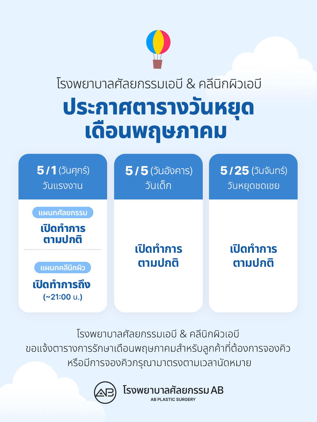 🌸✨ ประกาศตารางวันหยุดเดือนพฤษภาคมของ AB ✨🌸