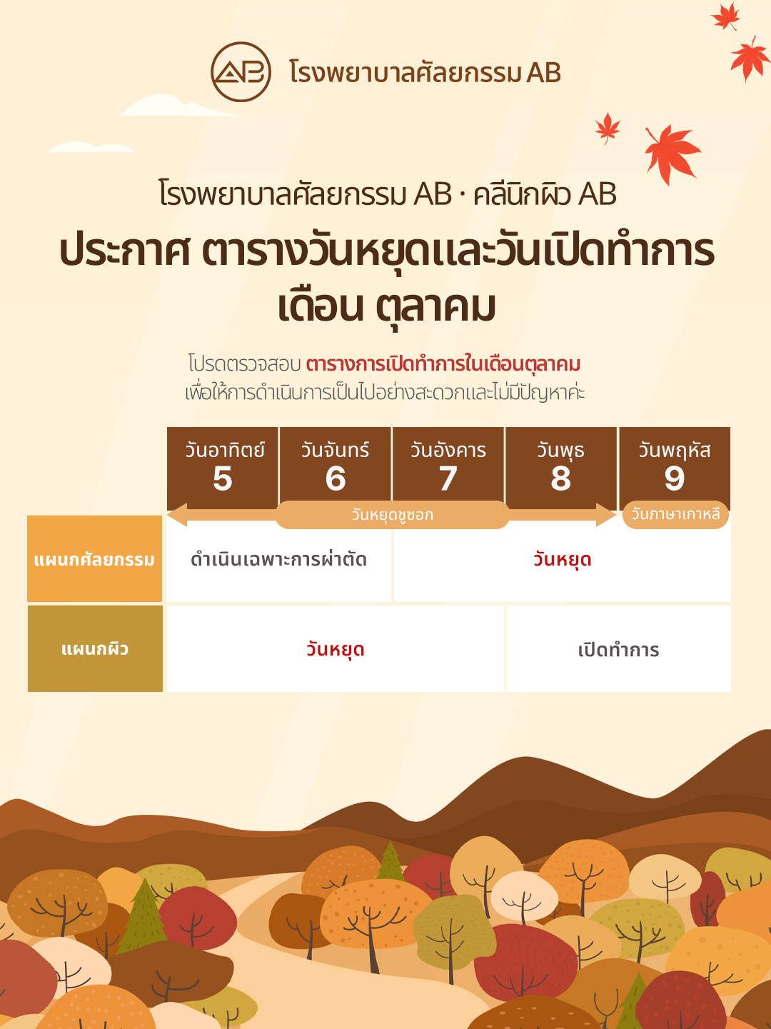 🍂✨ ประกาศตารางวันหยุดเดือนตุลาคมของ AB ✨🍂