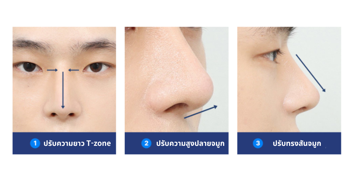 นอกจากนี้ ยังให้ความสำคัญกับการปรับระดับความสูงอย่างสมดุล เพื่อสร้างปลายจมูกที่มีวอลุ่ม ดูเรียวและคมชัด พร้อมออกแบบ มุม และรูปทรงให้เหมาะสมกับแต่ละบุคคล เพื่อให้ได้จมูกที่ลงตัวที่สุด อีกทั้งยังออกแบบทรงให้สอดคล้องกับสัดส่วนใบหน้าของแต่ละคน สร้างเส้นตรงที่ทอดยาวอย่างเป็นธรรมชาติจากสันจมูกถึงปลายจมูก ช่วยเสริมให้ภาพด้านข้างดูเป็นผู้ชายและกลมกลืน