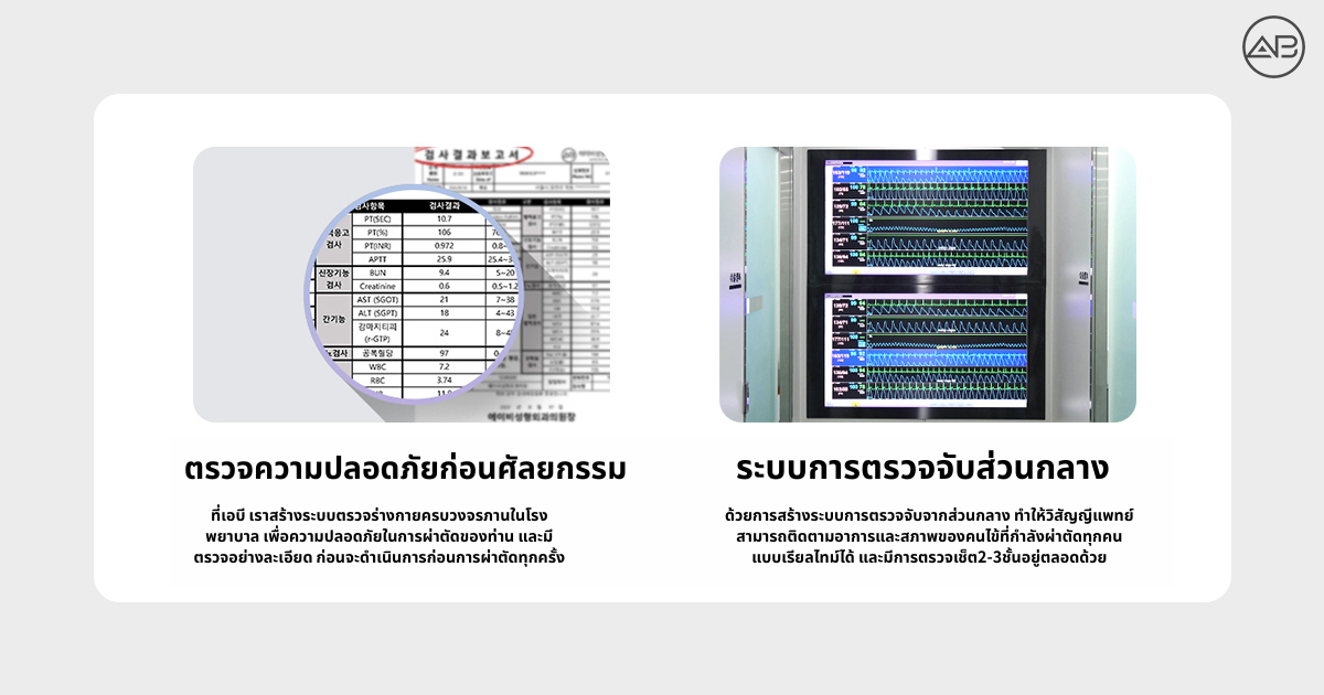ภายใต้สภาพแวดล้อมเช่นนี้ โรงพยาบาล AB ยังคงรักษาสถิติอุบัติเหตุทางการแพทย์ 0 เคส แม้จะมีการผ่าตัดจำนวนมากก็ตาม ซึ่งไม่ได้เป็นเพียงความบังเอิญหรือผลลัพธ์ชั่วคราว แต่เป็นผลจากระบบทางการแพทย์ที่ออกแบบโดยให้ความปลอดภัยเป็นอันดับแรกในทุกขั้นตอน ตั้งแต่การวินิจฉัยก่อนผ่าตัด ขั้นตอนการผ่าตัด ไปจนถึงการดูแลฟื้นฟูหลังผ่าตัด