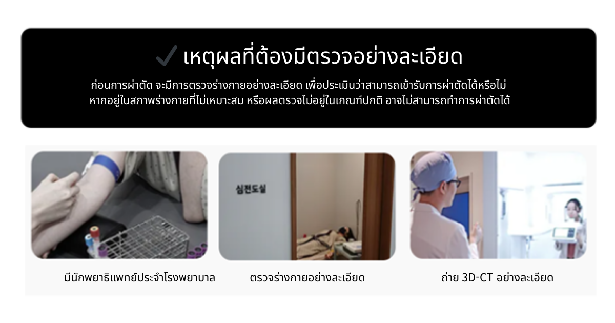 การตรวจล่วงหน้าอย่างเป็นระบบและกระบวนการวินิจฉัยที่แม่นยำเช่นนี้ ถือเป็นระบบบริหารจัดการความปลอดภัยที่สำคัญ ซึ่งช่วยคัดกรองปัจจัยเสี่ยงตั้งแต่ก่อนการผ่าตัด และลดความแปรผันที่อาจเกิดขึ้นระหว่างการผ่าตัดให้น้อยที่สุด