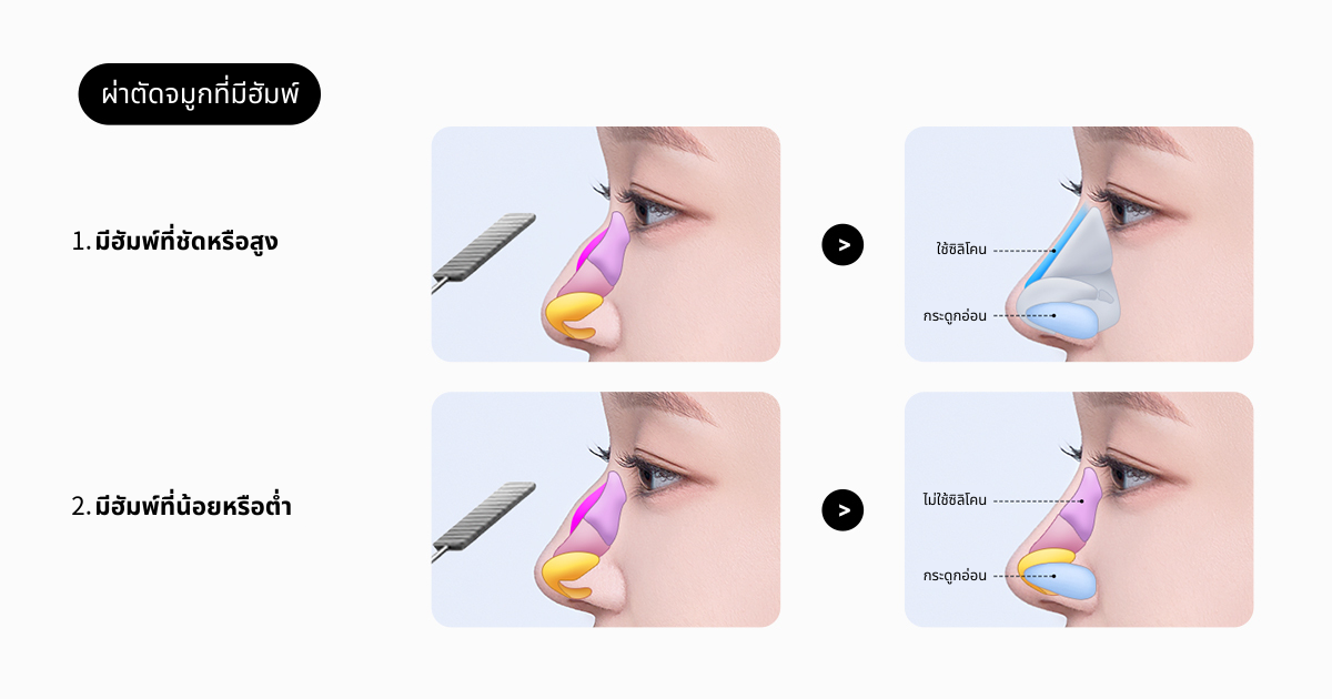 🔹 ประเภทที่ 1 สันจมูกสูง แต่มีฮัมพ์สูง ➡ เหลาฮัมพ์ + ปรับปลายจมูก (โดยไม่ใช้ซิลิโคน)