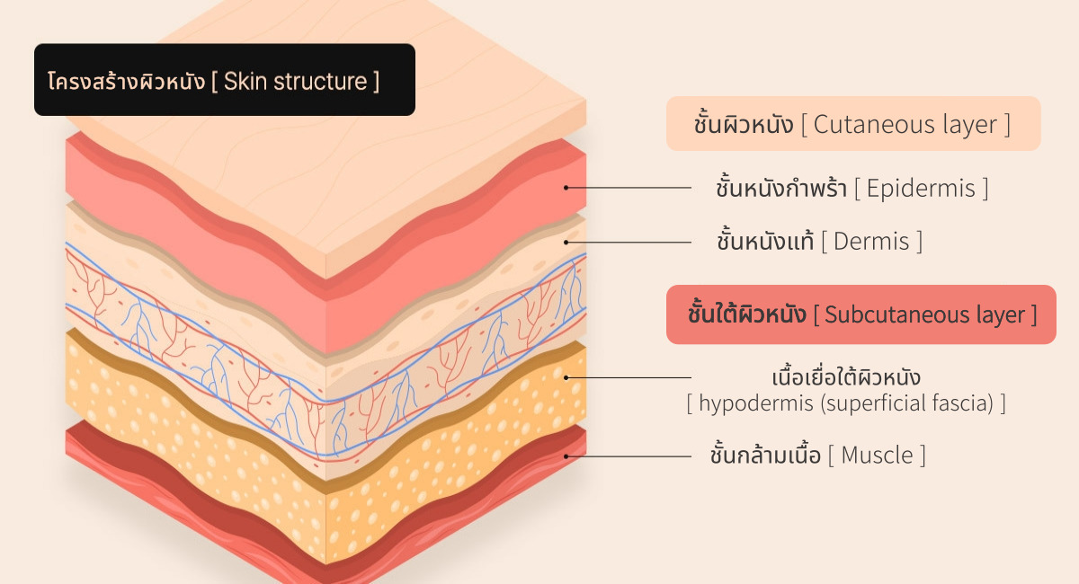 เนื้อเยื่อของมนุษย์นั้นจะค่อนข้างแตกต่างจากซีลีโคนตรงที่เนื้อเยื่อของเราจะเกิดปฏิกิริยาดูดซึมให้เป็นส่วนหนึ่งของร่างกายทันทีหลังการถูกปลูกถ่าย ดังนั้นจะสังเกตการเปลี่ยนแปลงได้ค่อนข้างยากมากกว่า อย่างที่เห็นได้จากรูปด้านบน ผิวหนังของคนเราจะถูกแบ่งออกเป็น ชั้นคือ “ชั้นหนังกำพร้า และชั้นหนังแท้” ซึ่งรวมไปถึงเนื้อเยื่อใต้หนังและไขมันใต้ผิวหนัง