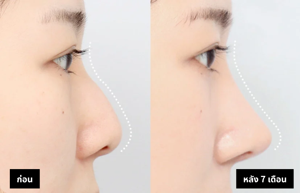 ในกรณีนี้ แค่ปรับสมดุลระหว่างสันจมูกและปลายจมูก ก็สามารถทำให้ใบหน้าดูคมขึ้นและมีมิติได้ โดยไม่จำเป็นต้องเสริมสันให้สูงมาก การยกและปรับปลายจมูกเพียงอย่างเดียวก็สามารถสร้างความเปลี่ยนแปลงที่ชัดเจน ทำให้ความพึงพอใจหลังผ่าตัดค่อนข้างสูง