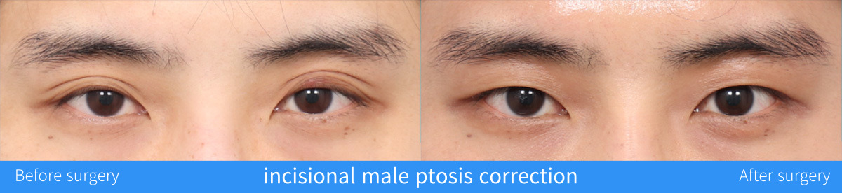 อีกอย่างหลังการผ่าตัดถ้ามีรอยแผลเป็น ผู้หญิงยังสามารถแต่งหน้ากลบรอยได้ แต่ผู้ชายไม่ได้ไงครับ เพราะฉะนั้นเนี่ย ถ้าเกิดผ่าตัดแล้วผลลัพธ์ออกมาไม่ดี เคสของผู้ชายคงจะเครียดกว่าเคสของผู้หญิงแน่นอนครับ ดังนั้นแทนที่จะเน้นที่การเพิ่มขนาดของดวงตา เราจะเน้นไปที่การจัดการเนื้อของชั้นตาที่หย่อนคล้อยให้เหมาะสม และเปิดตาให้สดใสเห็นตาดำและตาขาวมากขึ้นพร้อมเปิดหัวตา หางตา ให้เข้ากับคนไข้มากขึ้น นี่แหละคือสิ่งสำคัญครับ