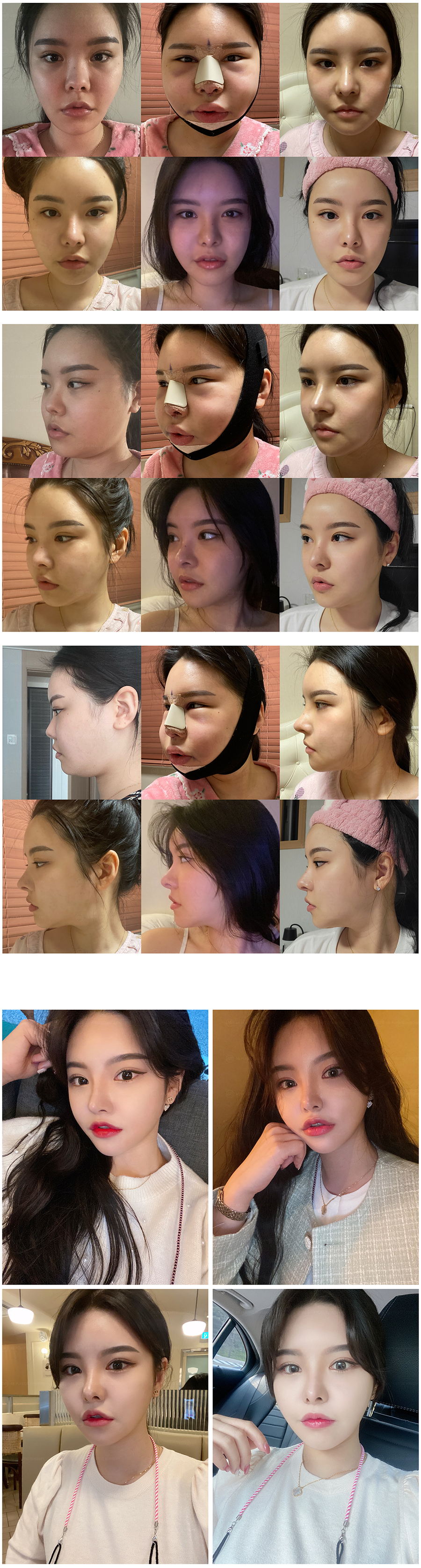 มันจะบวมมากๆ ช่วงแรกๆจนตกใจ แต่ตอนนี้ฉันบอกได้ว่าอาการบวมลดลงมาก! หมอบอกว่าต้องใช้เวลาอย่างน้อย 3 เดือนกว่าจะเริ่มสังเกตเห็นการเปลี่ยนแปลง ตอนนี้อาการบวมลดลงบ้างแล้ว เห็นแววความสวยออกมาเลย เพราะเราไม่ได้บอกเพื่อนๆว่าทำโครงหน้าด้วย แต่เพื่อนทักก่อนเลย ว่าหน้าเล็กลงเยอะมาก คนส่วนใหญ่คิดว่าแค่ทำจมูกก็เปลี่ยนมากแล้ว เเต่เอาจริงๆ โครงหน้าปรับนิดหน่อยเหมือนเปลี่ยนชึวิตไปเลย ต้องขอบคุณหมออัน ที่ช่วยปรับแก้โครงหน้าให้ได้ขนาดนี้ เราพอใจมาก และมีความมั่นใจในการใช้ชีวิตประจำวันมากขึ้น JJJ
