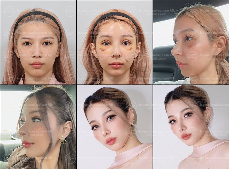 และได้ทำตาสองชั้นแบบกรีด,เอนโดไทน์ยกกระชับหน้าผาก,ฉีดไขมันทั่วหน้า,และศัลยกรรมแก้จมูกโดยใช้เป็นซี่โครงตัวเองที่โรงพยาบาลเอบีค่ะ