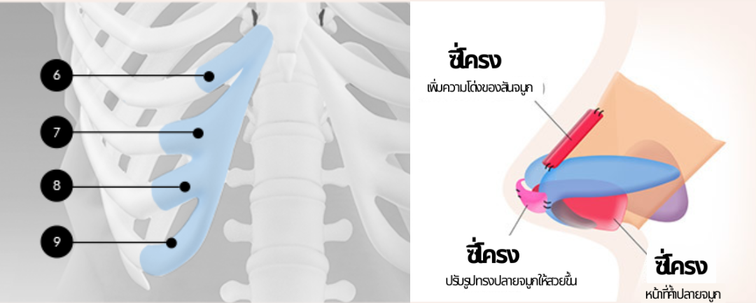 2️⃣ เสริมปลายจมูกด้วยกระดูกซี่โครง