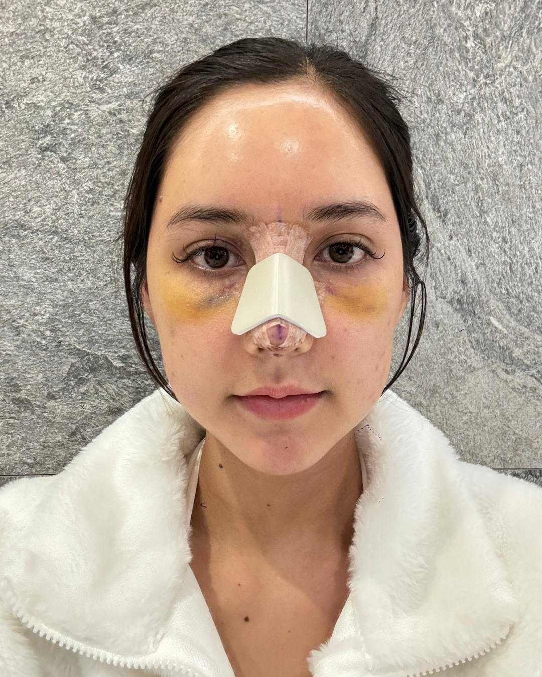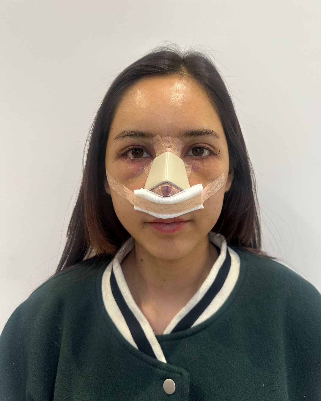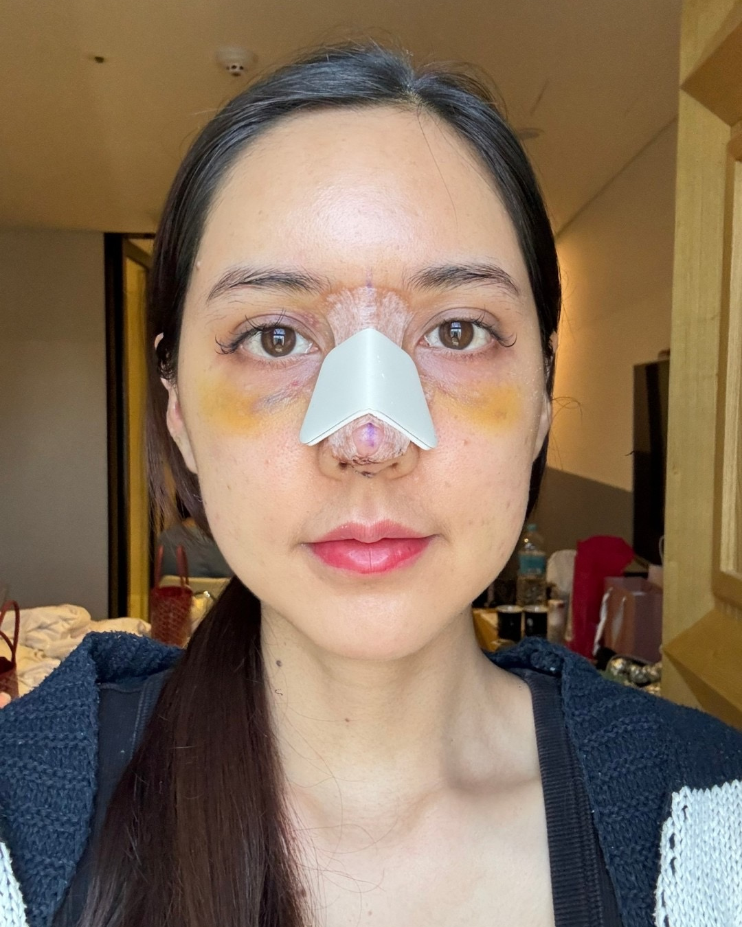 แม้โครงหน้าของคุณ Ice Jarunya จะมีสัดส่วนที่สวยอยู่แล้ว แต่เดิมสันจมูกมีลักษณะเอียงเล็กน้อยเมื่อมองจากด้านหน้า ศัลยแพทย์จึงเลือกใช้เทคนิค ปรับแนวผนังกั้นจมูก ร่วมกับการจัดเรียงฐานกระดูกให้ตรง เพื่อให้โครงสร้างจมูกตั้งอยู่ในแนวที่สมดุลมากขึ้น วิธีนี้ไม่เพียงช่วยแก้ปัญหาความเบี้ยวของจมูก แต่ยังทำให้ใบหน้าโดยรวมดูสมมาตรและละมุนขึ้นอีกระดับ เหมาะอย่างยิ่งสำหรับผู้ที่ต้องการความเป๊ะในทุกมุม โดยเฉพาะเวลาถ่ายรูปหน้าตรง